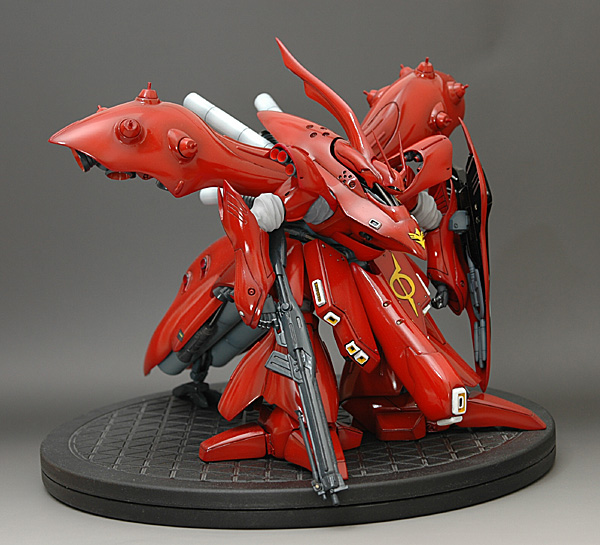 5日間しかありませんでしたが1日15時間の平均作業です。塗装にかなり気を使ったつもりです。 今回、これを塗装するにあたり、キット形状から『虫っぽく!』をコンセプトに、『艶あり!』でまとめてみました。 写真では解りにくいですが、かなり光沢があります。クリア大瓶3個使い切りましたから〜。本当は『ウレタン2液混合タイプ』のクリアを使いたかったのですが、時間的余裕が無くあえなく断念。次回似た様なシチュエーションがあったら試してみたいと思います。 それと今回とても重宝したのが、クレオスの『Mrマスキングゾル改』です。以前どこぞのマスキングゾルを使って収集がつかなくなった事から『マスクゾル系』は一切使用(信用)していませんでした。今回、違う銘柄で再トライ! って言うか、必要に迫られた為から仕方なしの作業。 でも、これは使えます!マジ使えました。今後の使用を考えて在庫として3個キープ。 他のと比べてちょっとお高いですけどね。 これからの塗装方の幅が増えそうな予感。